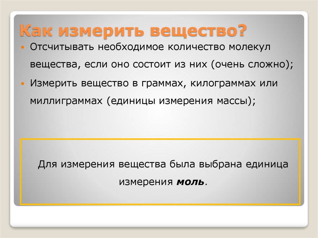 Как измерить вещество?Отсчитывать необходимое количество молекул
