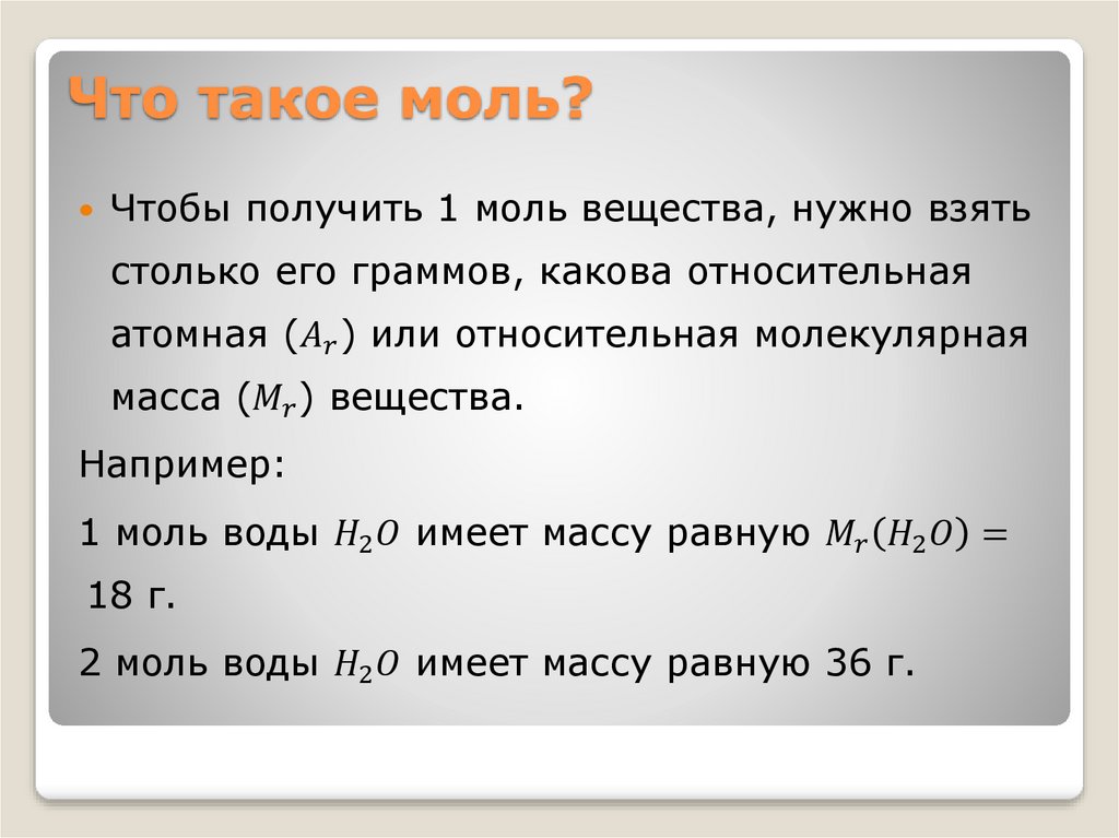 Что такое моль?Чтобы получить 1 моль вещества, нужно взять