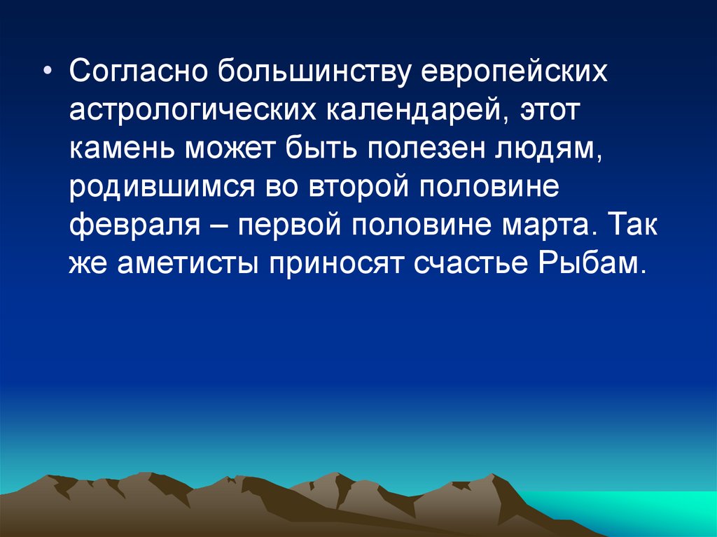 • Аметист — это амулет для людей,родившихся под знаком Близнецов.