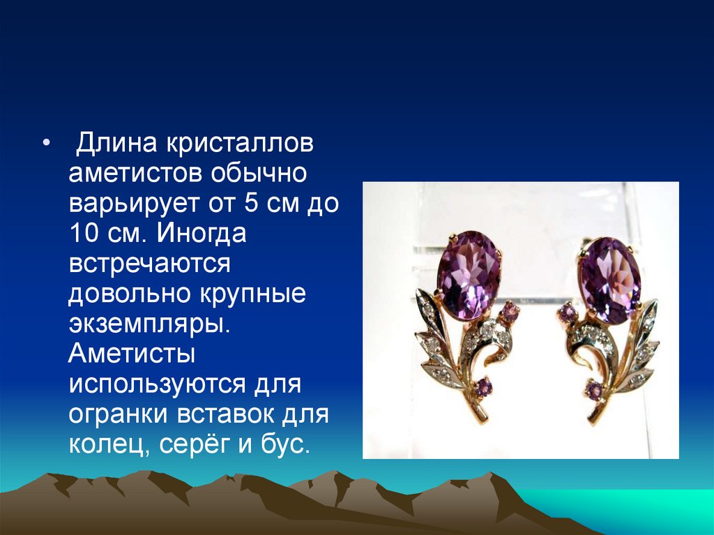 • Длина кристалловаметистов обычно