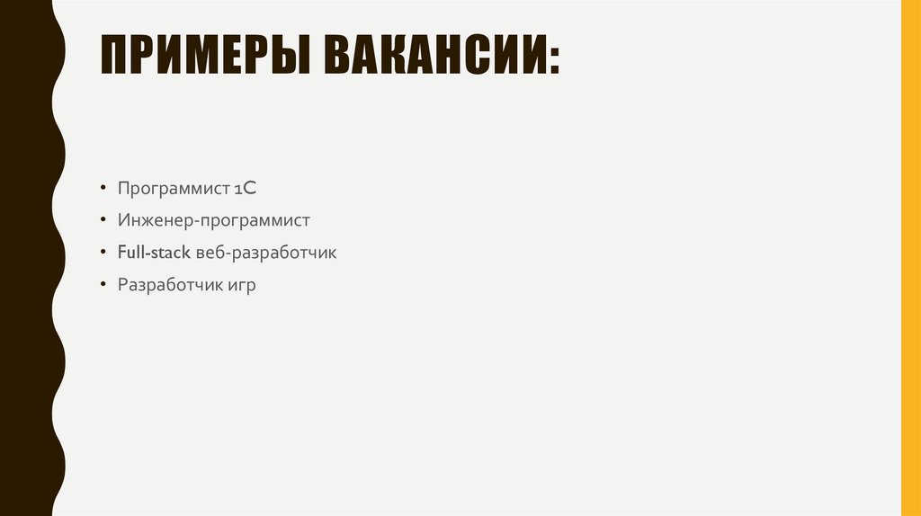 ПРИМЕРЫ ВАКАНСИИ:• Программист 1C