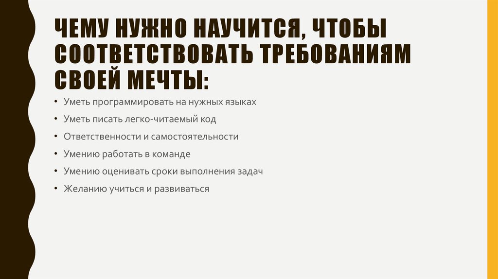 ЧЕМУ НУЖНО НАУЧИТСЯ, ЧТОБЫСООТВЕТСТВОВАТЬ ТРЕБОВАНИЯМ