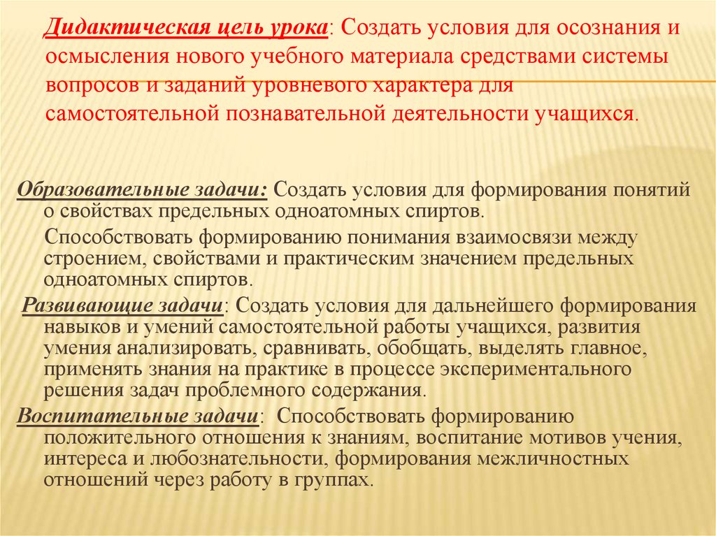 Дидактическая цель урока: Создать условия для осознания иосмысления нового учебного материала средствами системы