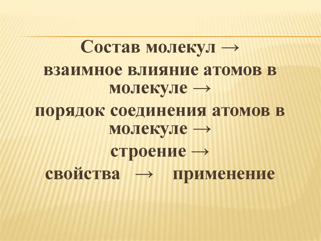 Состав молекул →взаимное влияние атомов в