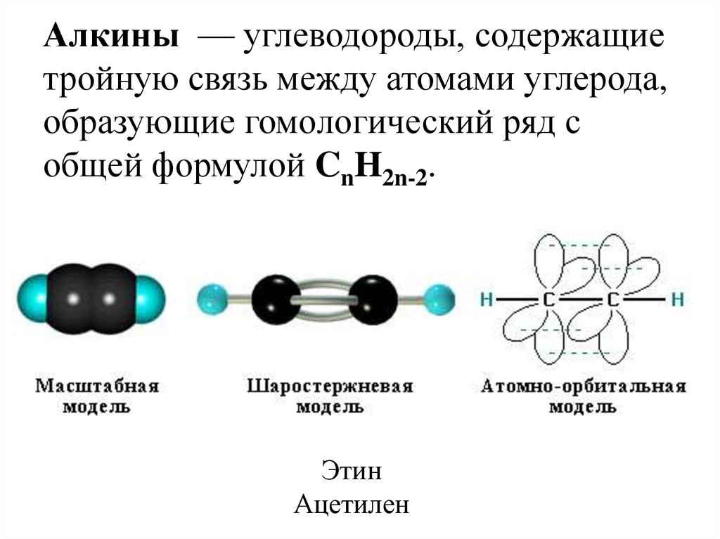 Алкины — углеводороды, содержащиетройную связь между атомами углерода,