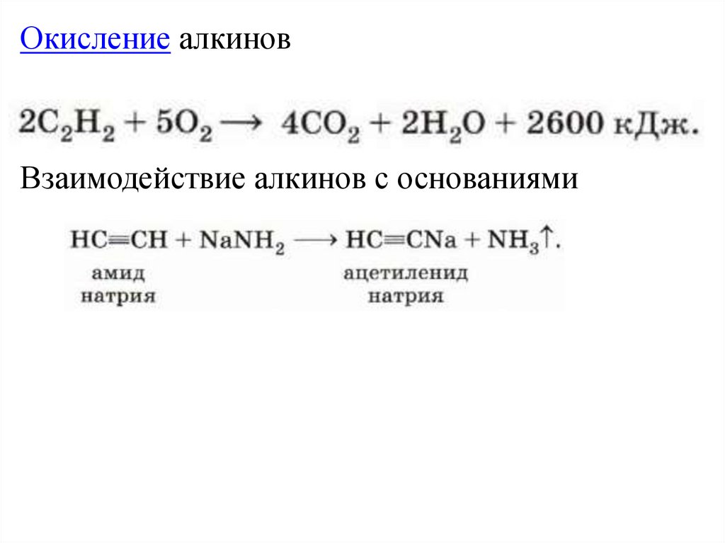 Окисление алкиновВзаимодействие алкинов с основаниями