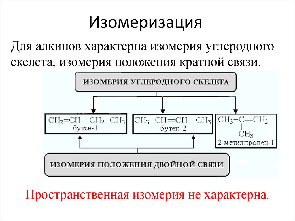 ИзомеризацияДля алкинов характерна изомерия углеродного