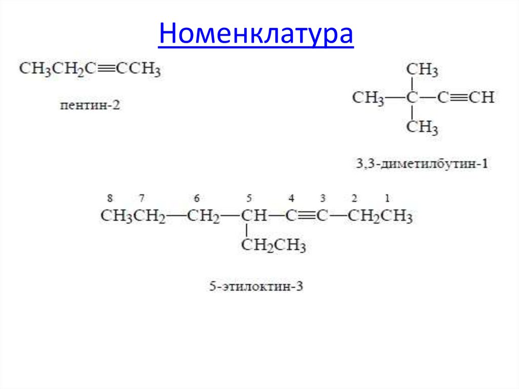 НоменклатураПростейшим алкином является этин. По