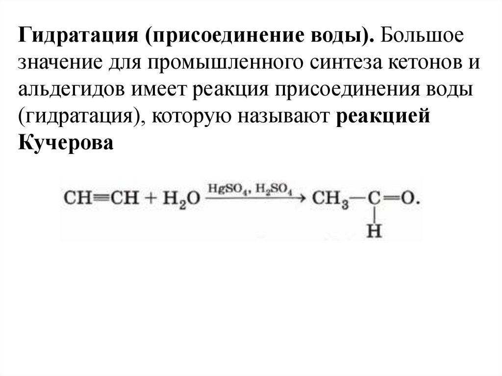 Гидратация (присоединение воды). Большоезначение для промышленного синтеза кетонов и