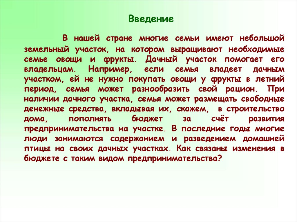 ВведениеВ нашей стране многие семьи имеют небольшой