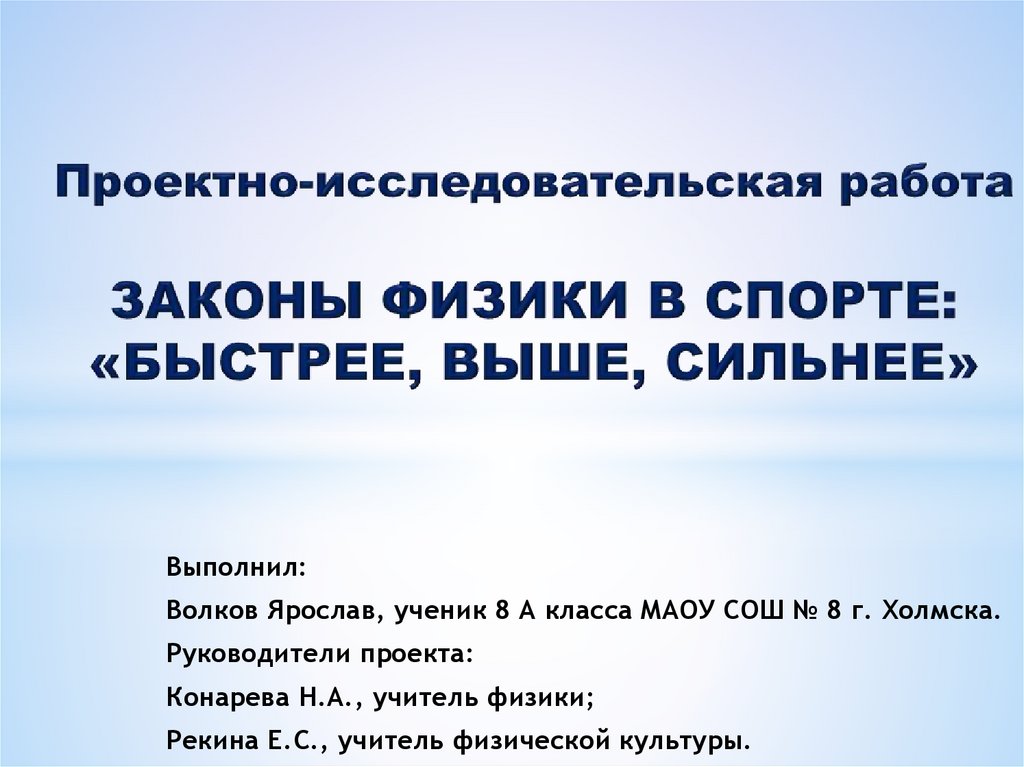 «ЗАКОНЫ ФИЗИКИ В СПОРТЕ:БЫСТРЕЕ, ВЫШЕ, СИЛЬНЕЕ»
