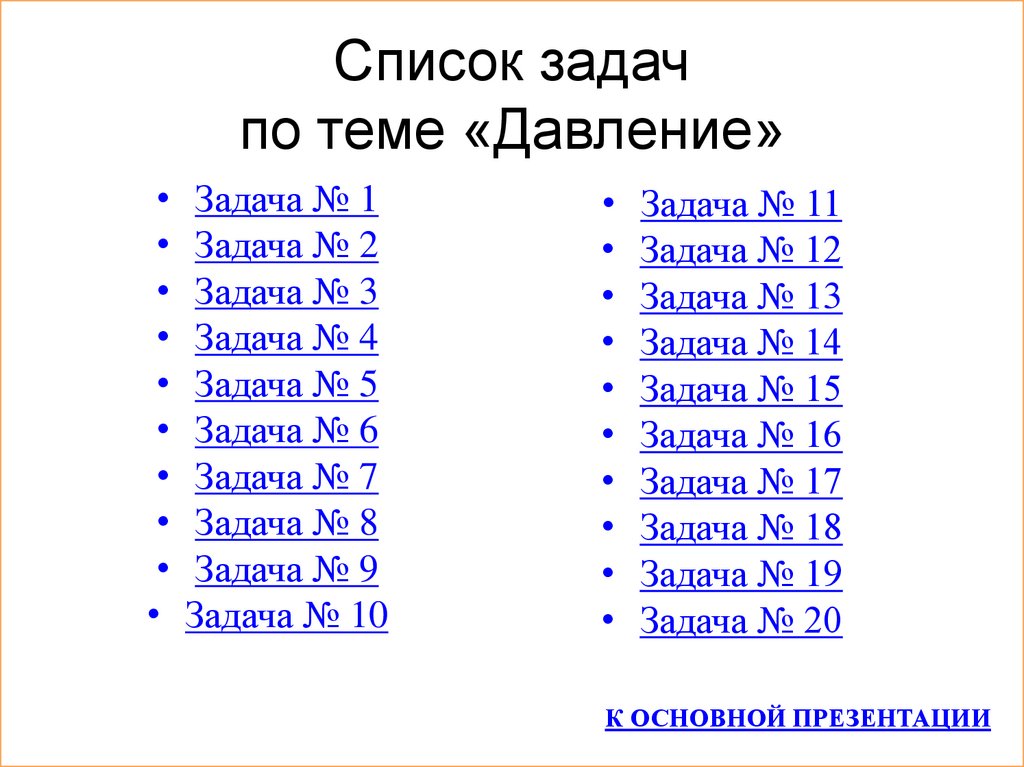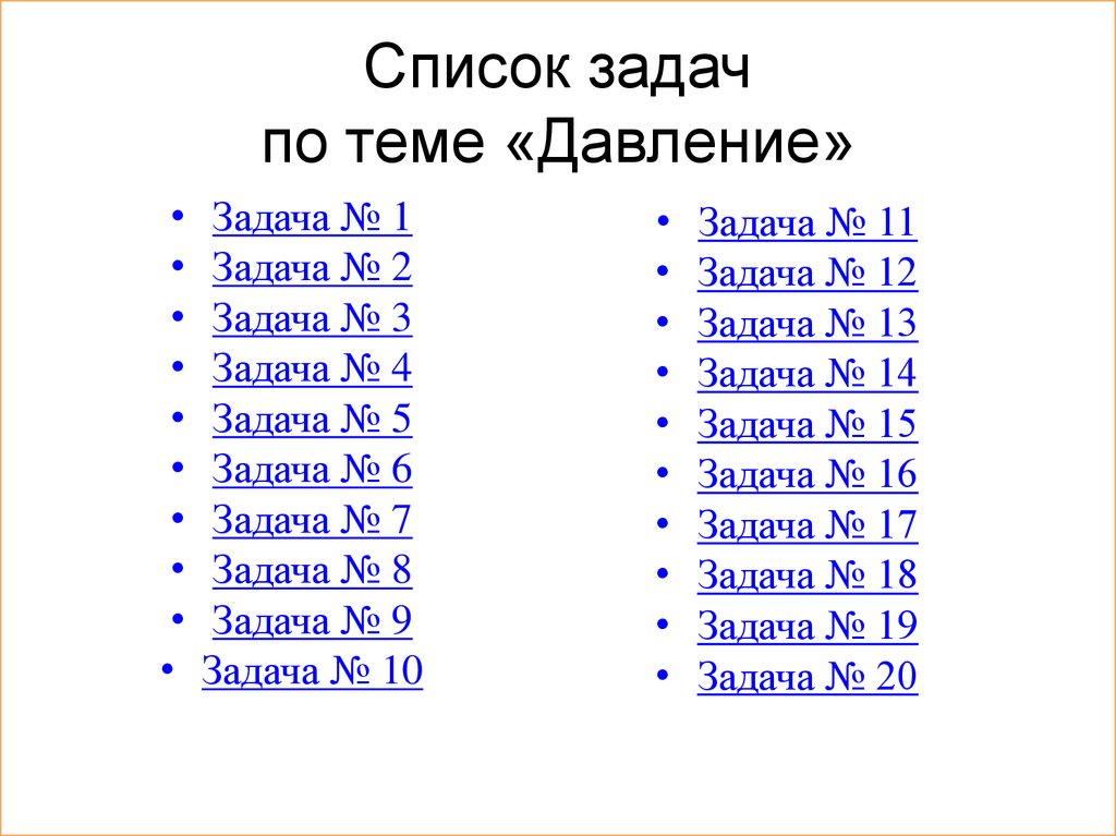 Список задачпо теме «Давление»