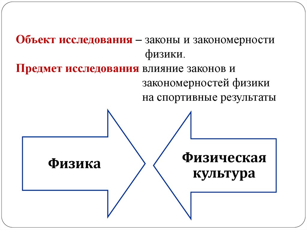Объект исследования – законы и закономерностифизики.