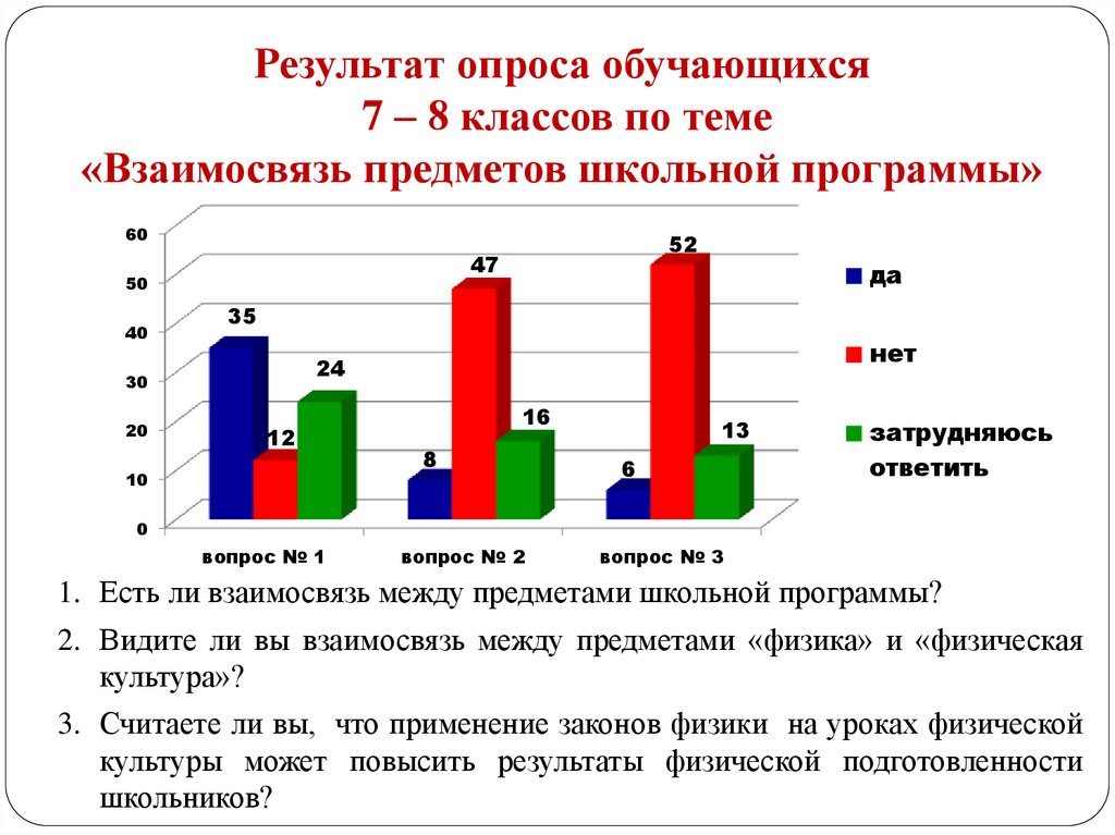3. Считаете ли вы, что применение законов физики на уроках физической