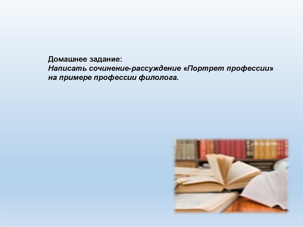 Домашнее задание:Написать сочинение-рассуждение «Портрет профессии»