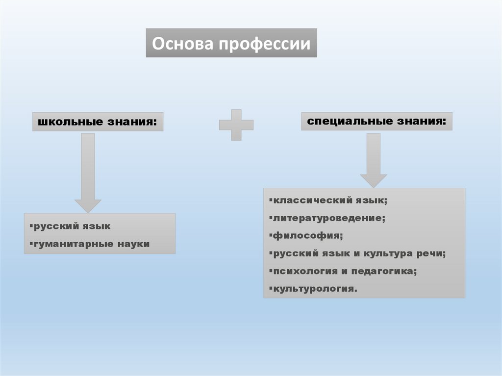 Основа профессиишкольные знания: