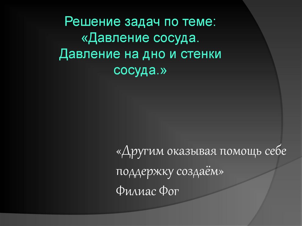 Решение задач по теме: «Давление сосуда. Давление на дно и стенки сосуда.»