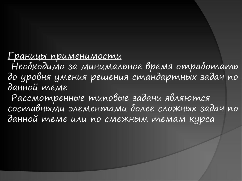 Границы применимостиНеобходимо за минимальное время отработать