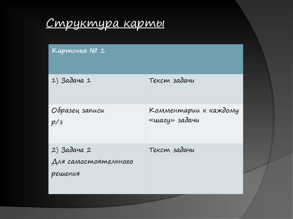 Структура картыКарточка № 1