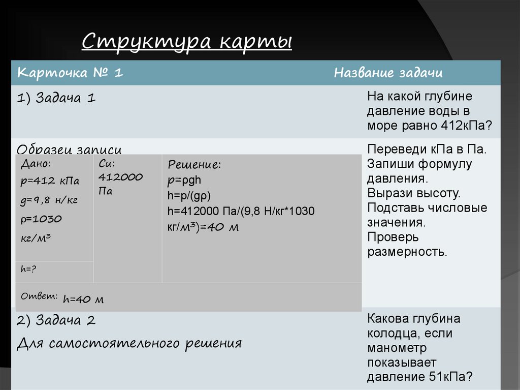 Основные задачи к уроку1.Определить давление по