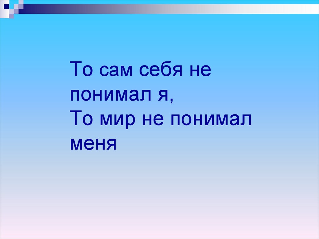 1. То сам себя не понимал я, То мир не понимал меня