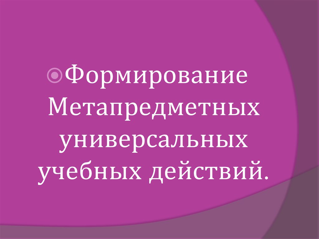Формирование Метапредметных универсальных учебных действий
