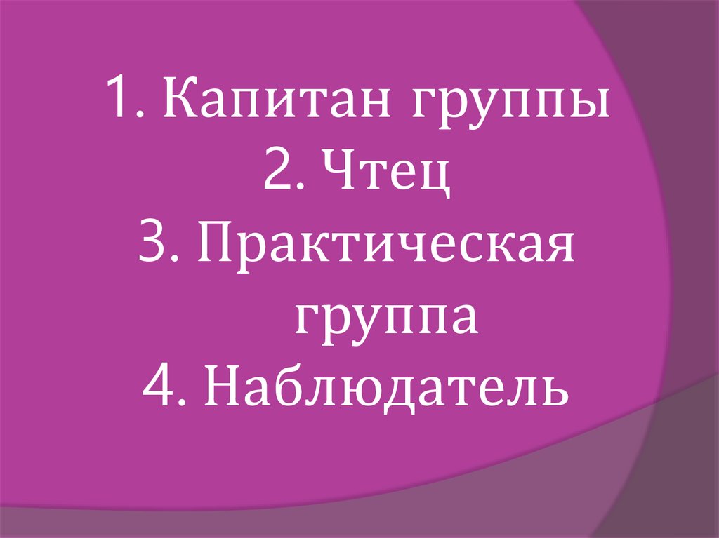 1. Капитан группы2. Чтец