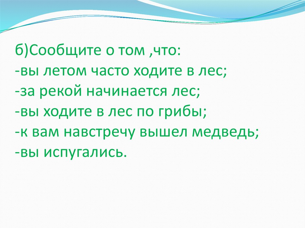 б)Сообщите о том ,что:-вы летом часто ходите в лес;