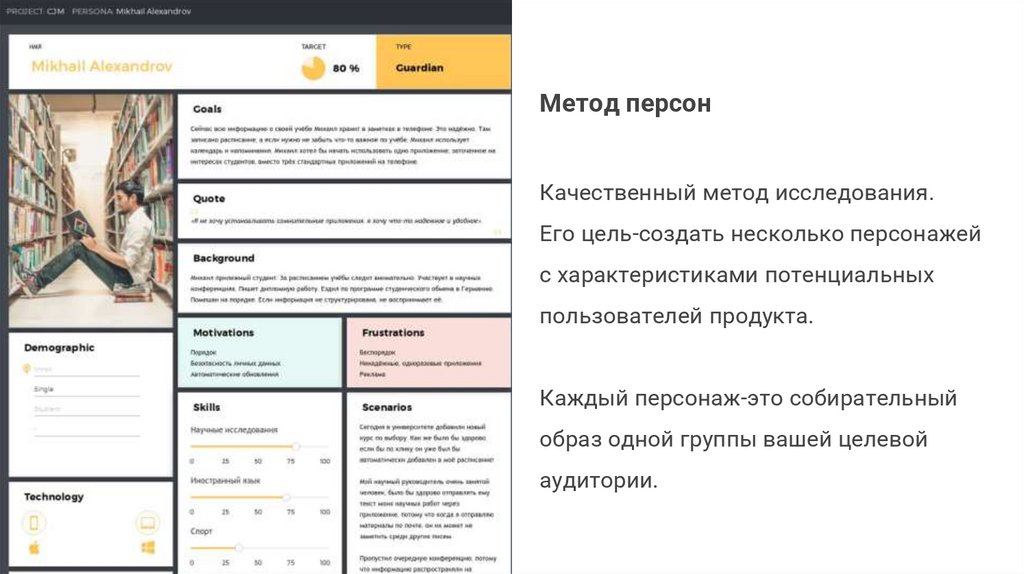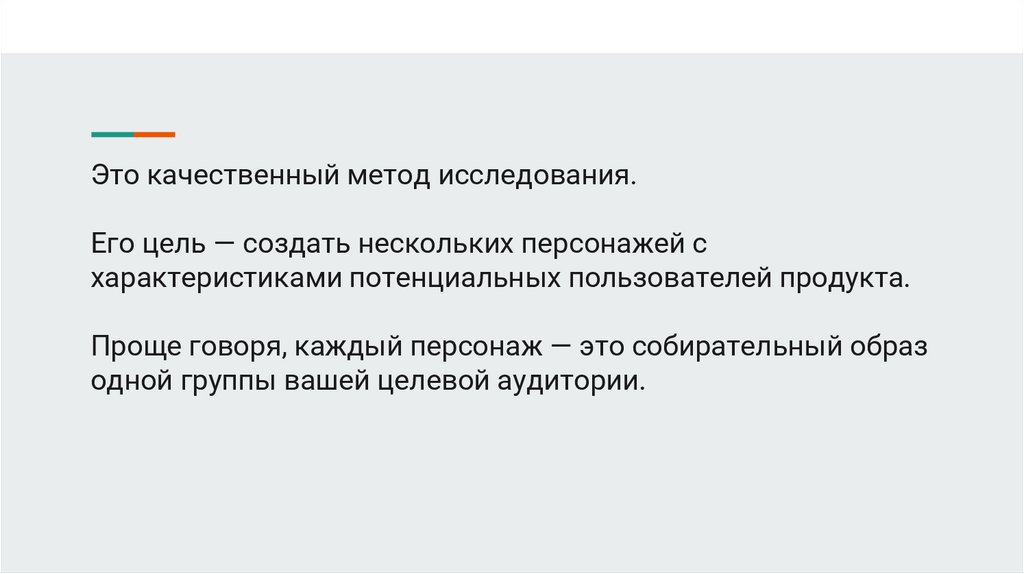 Это качественный метод исследования.Его цель — создать нескольких персонажей с