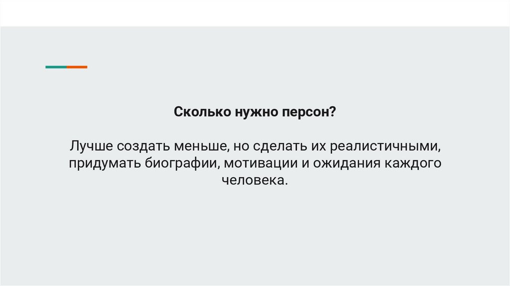 Сколько нужно персон?Лучше создать меньше, но сделать их реалистичными,
