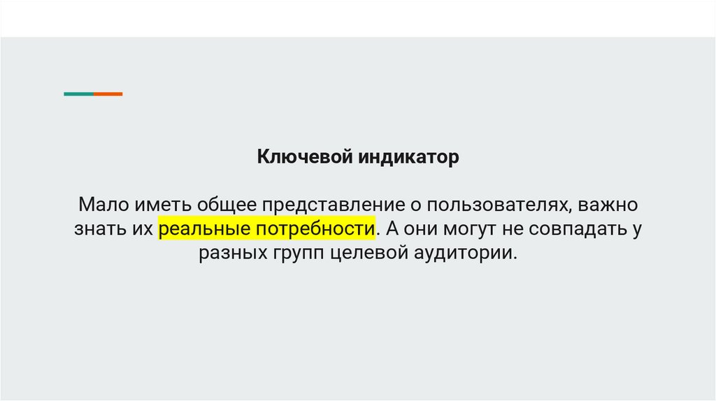 Ключевой индикаторМало иметь общее представление о пользователях, важно