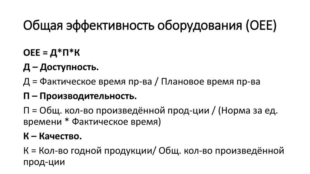 Общая эффективность оборудования (OEE)OEE = Д*П*К