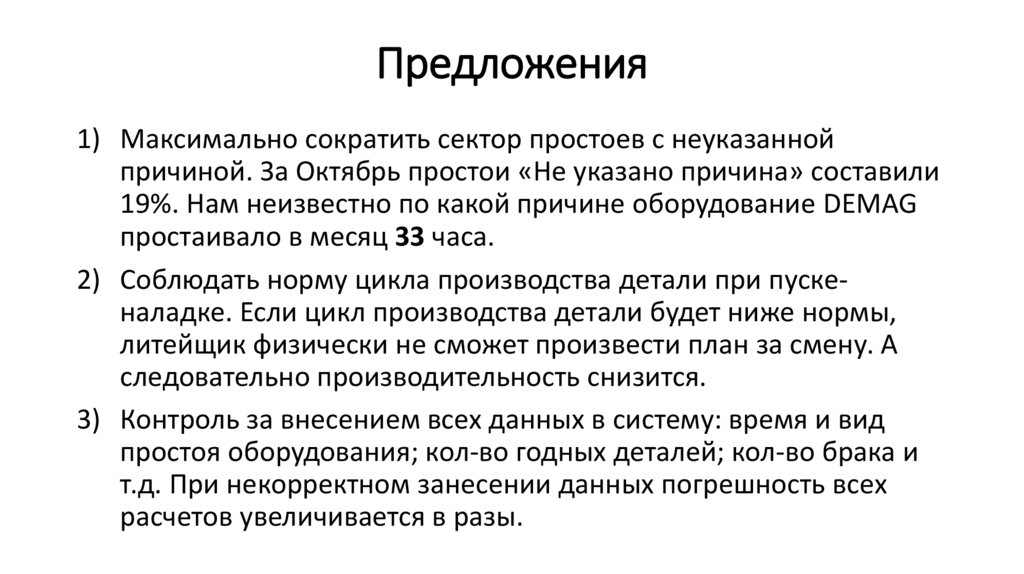 Предложения1) Максимально сократить сектор простоев с неуказанной