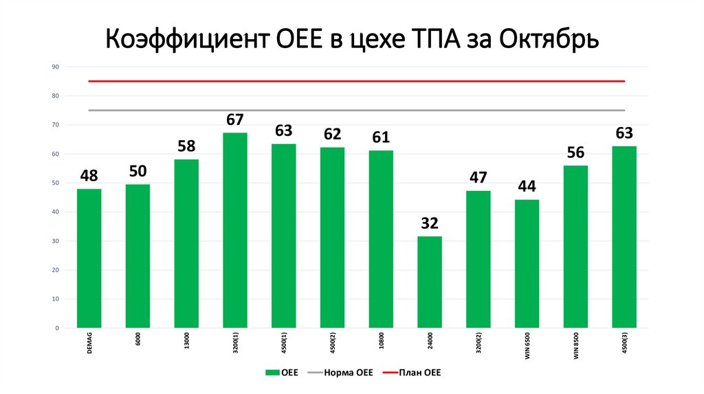 Коэффициент OEE в цехе ТПА за Октябрь90
