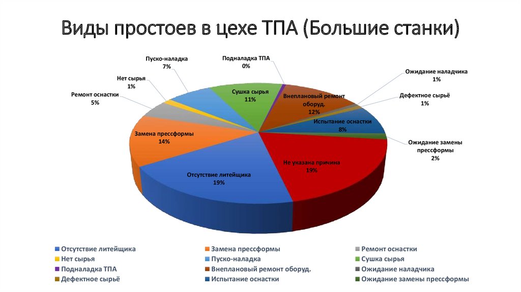 Простои оборудования (большие станки)Отсутствие литейщика