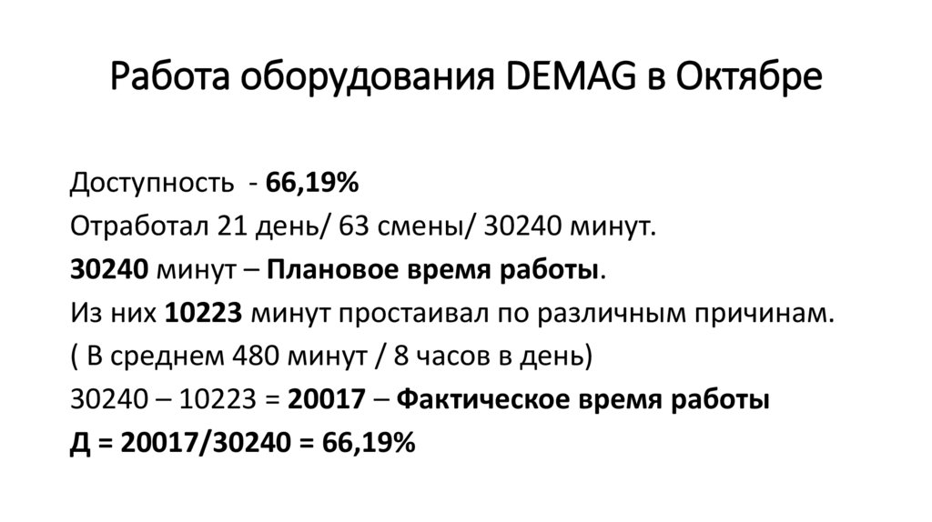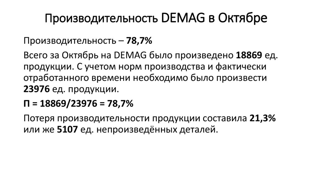 Производительность DEMAG в ОктябреПроизводительность – 78,7%