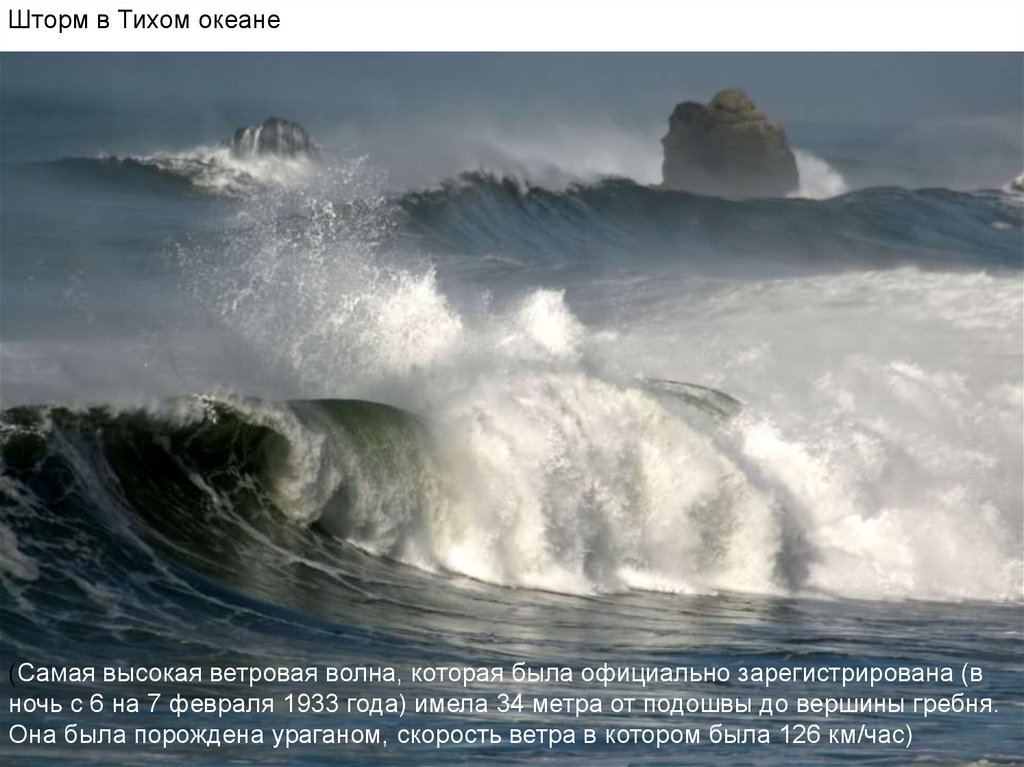 Шторм в Тихом океане(Самая высокая ветровая волна, которая была официально зарегистрирована (в