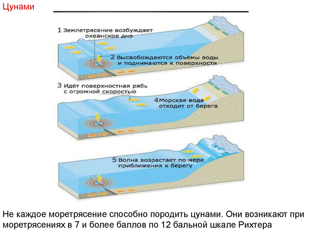 ЦунамиНе каждое моретрясение способно породить цунами. Они возникают при