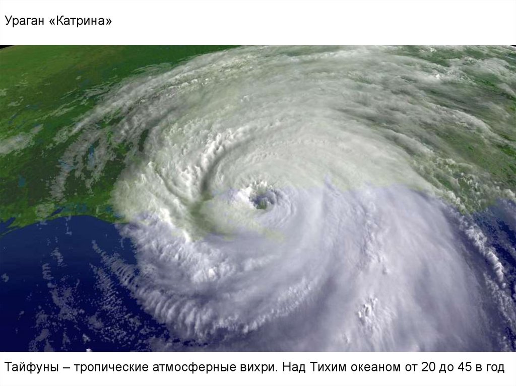 Ураган «Катрина»Тайфуны – тропические атмосферные вихри. Над Тихим океаном от 20 до 45 в год
