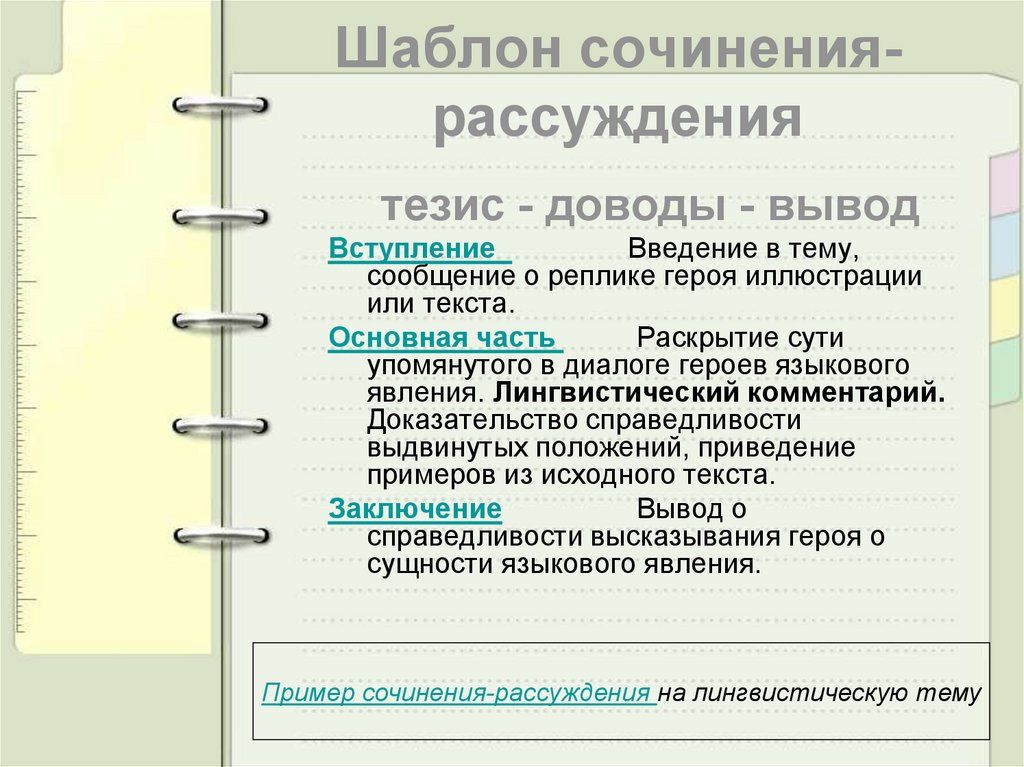 Шаблон сочинениярассуждениятезис - доводы - вывод