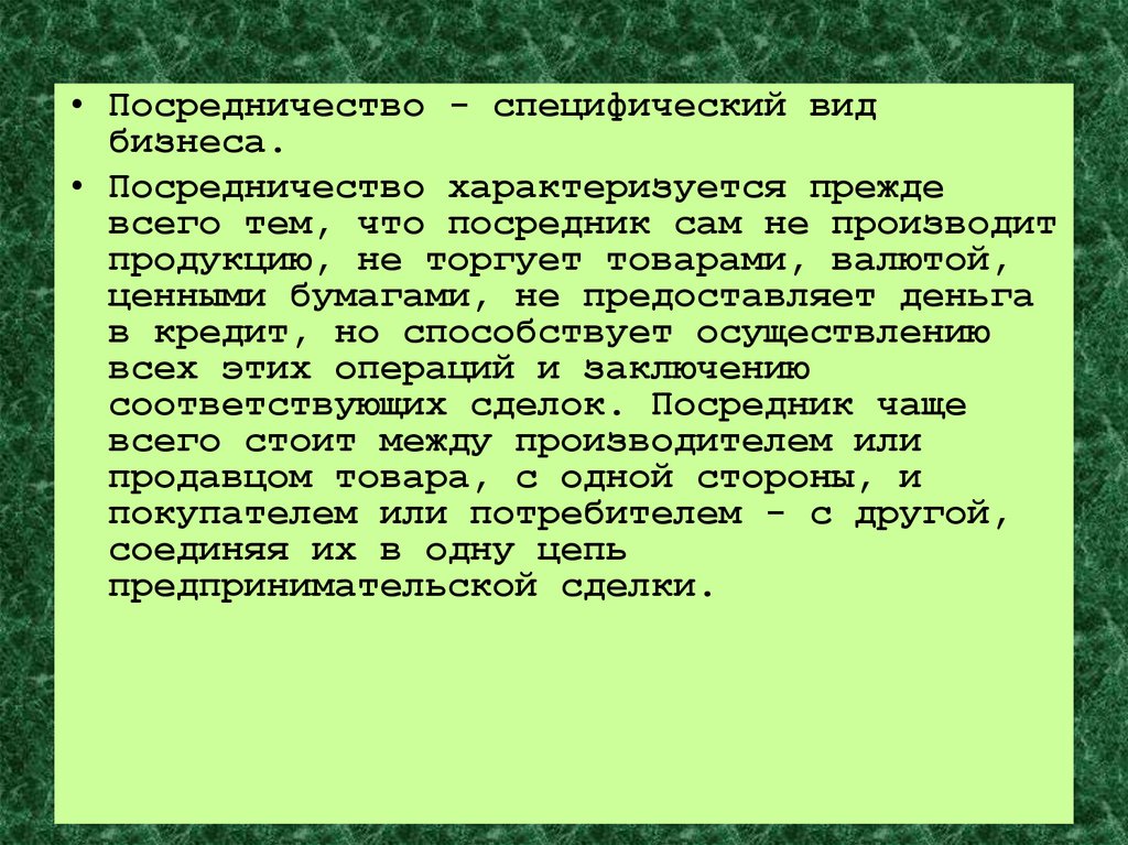 • Посредничество - специфический видбизнеса.