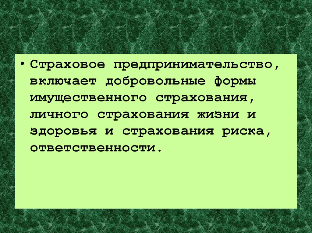 • Страховое предпринимательство,включает добровольные формы