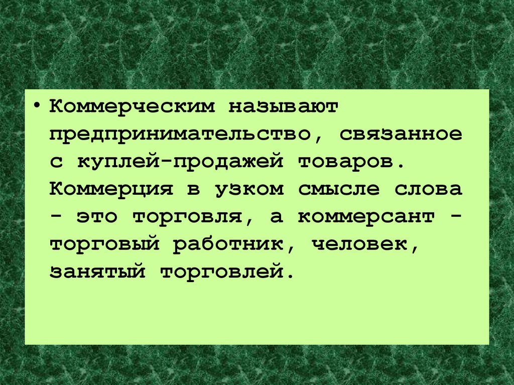 • Коммерческим называютпредпринимательство, связанное