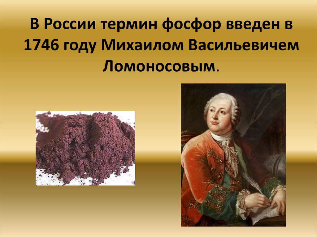 В России термин фосфор введен в1746 году Михаилом Васильевичем