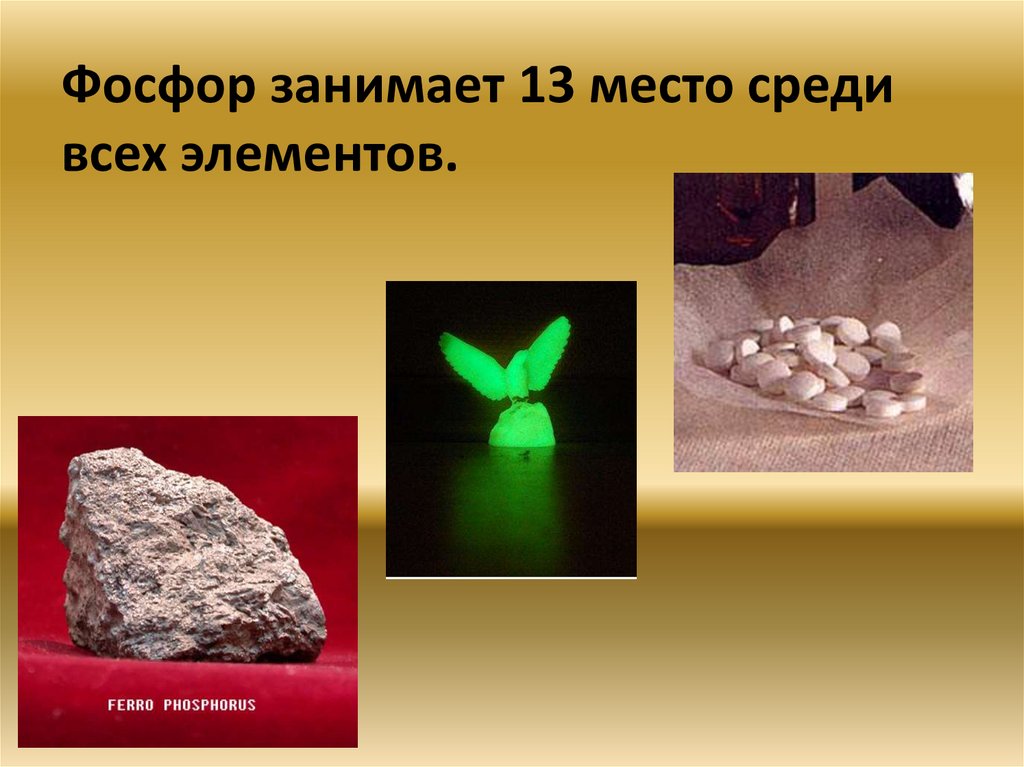 Фосфор занимает 13 место средивсех элементов.