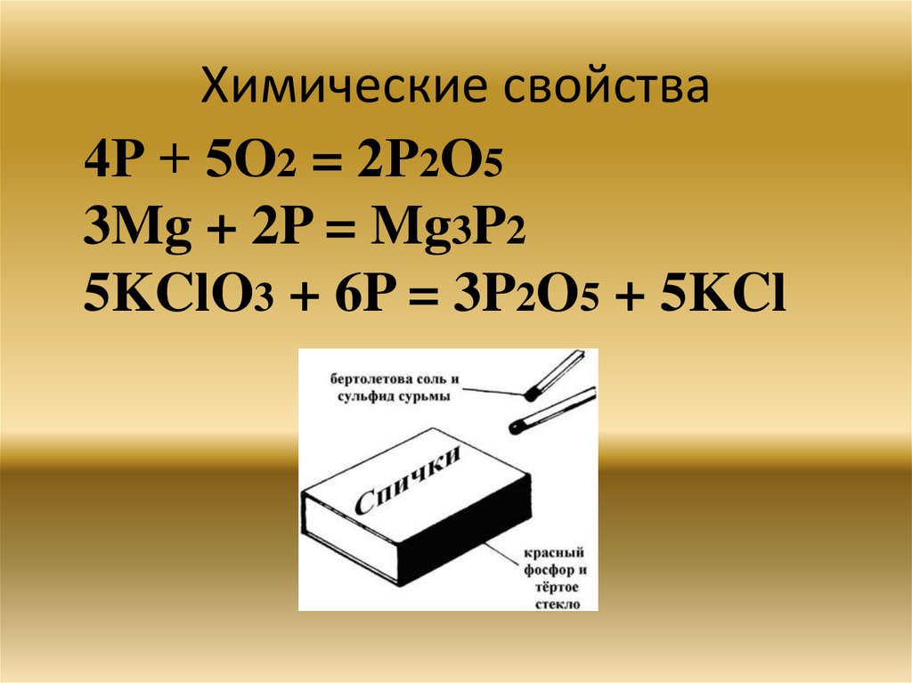 Химические свойства4Р + 5О2 = 2Р2О5