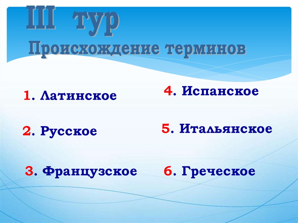 1. Латинское4. Испанское
