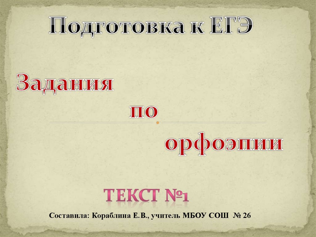 Подготовка к ЕГЭ. Задания по орфоэпии