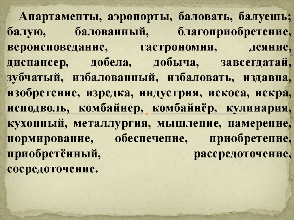 Апартаменты, аэропорты, баловать, балуешь;балую,
