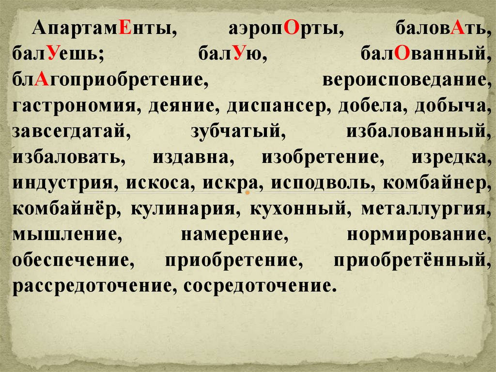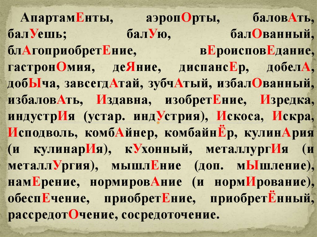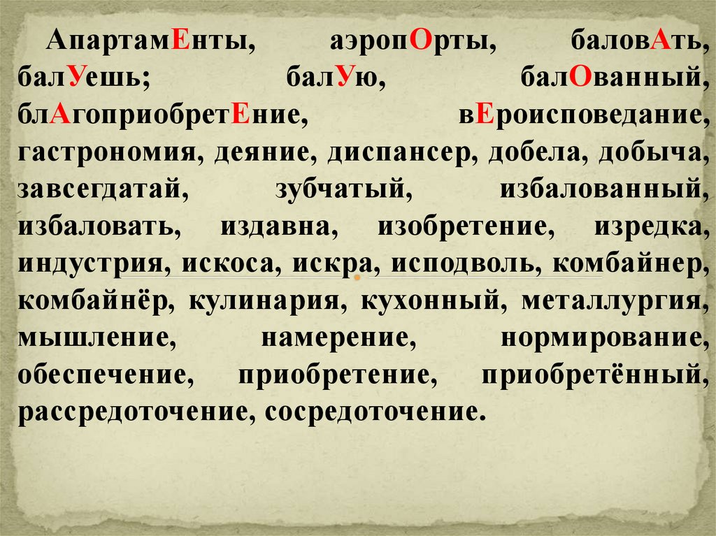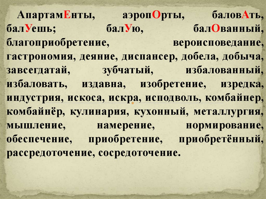 АпартамЕнты, аэропОрты, баловать, балуешь;балую,